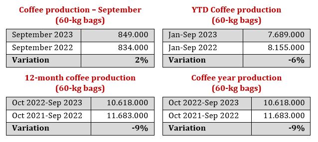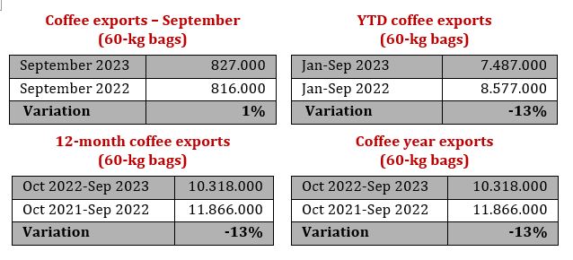 Like in the last two years, the event of La Niña has affected the flowering of coffee plantations, reducing production and consequently coffee exports.